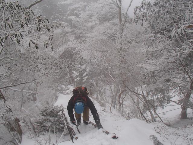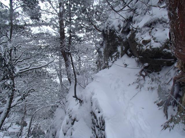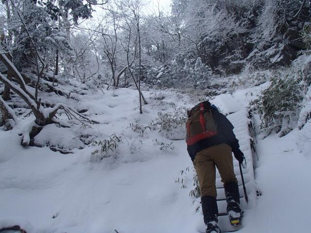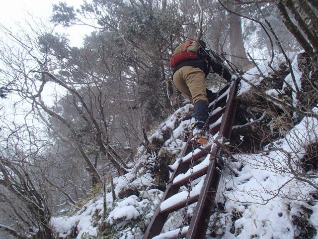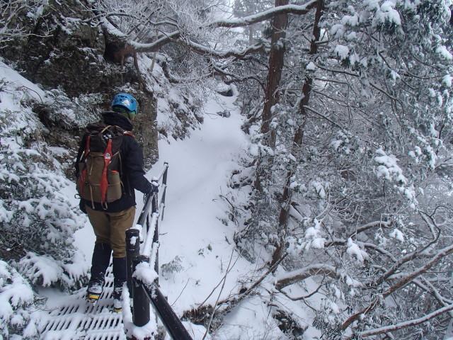 思った以上に雪がなく新雪を踏めばすぐ地面でなかなか歩きにくく大変でした。下りの梯子を12本アイゼンで降りていくのがなかなか大変。時間がかかりました。