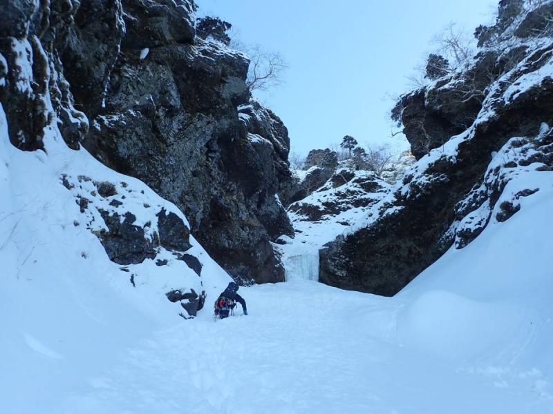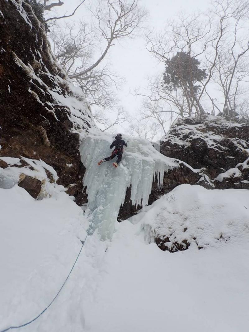 氷柱は下部に雪がこんもりと盛り、やさしそうに見えますが、私にとっては、かなり傾斜がきつかったです。
