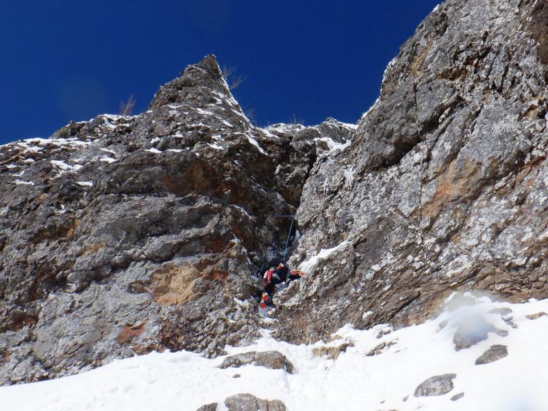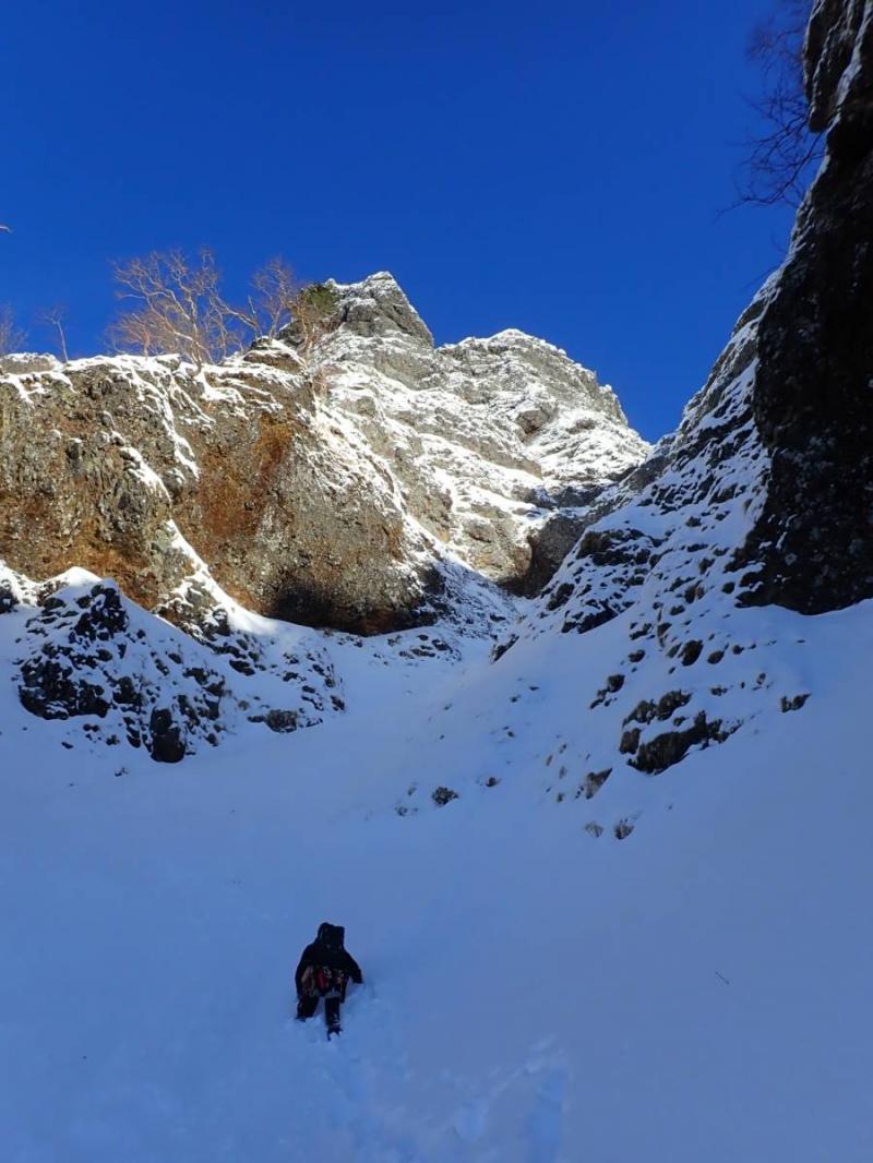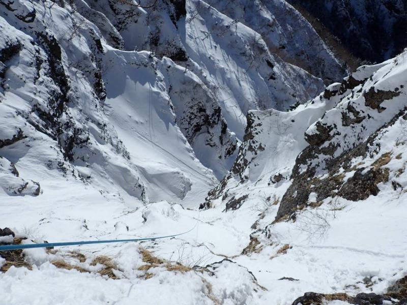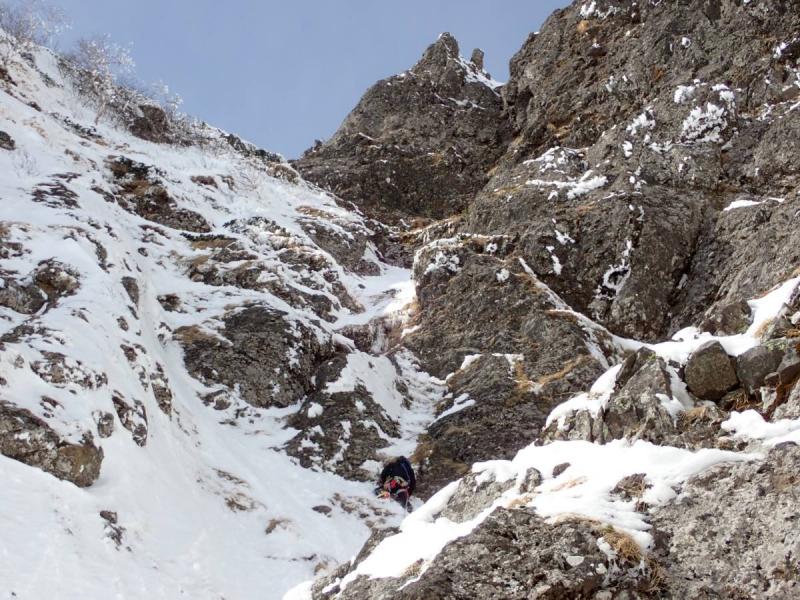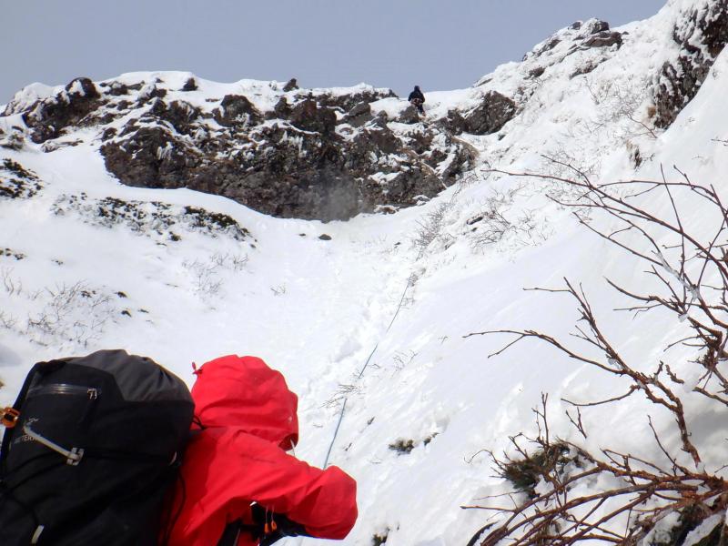 ルンゼ内は吹溜りで、急登のため、かなりの疲労。