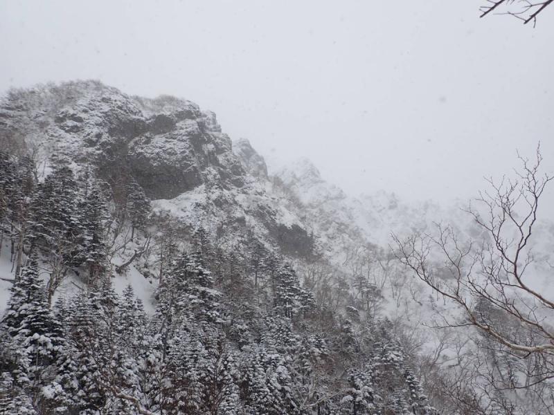 南岸低気圧の影響で、どんどん雪深くなり、わたしたちが一番早く出発したので、膝程のラッセルをしなければならなくなりました。
