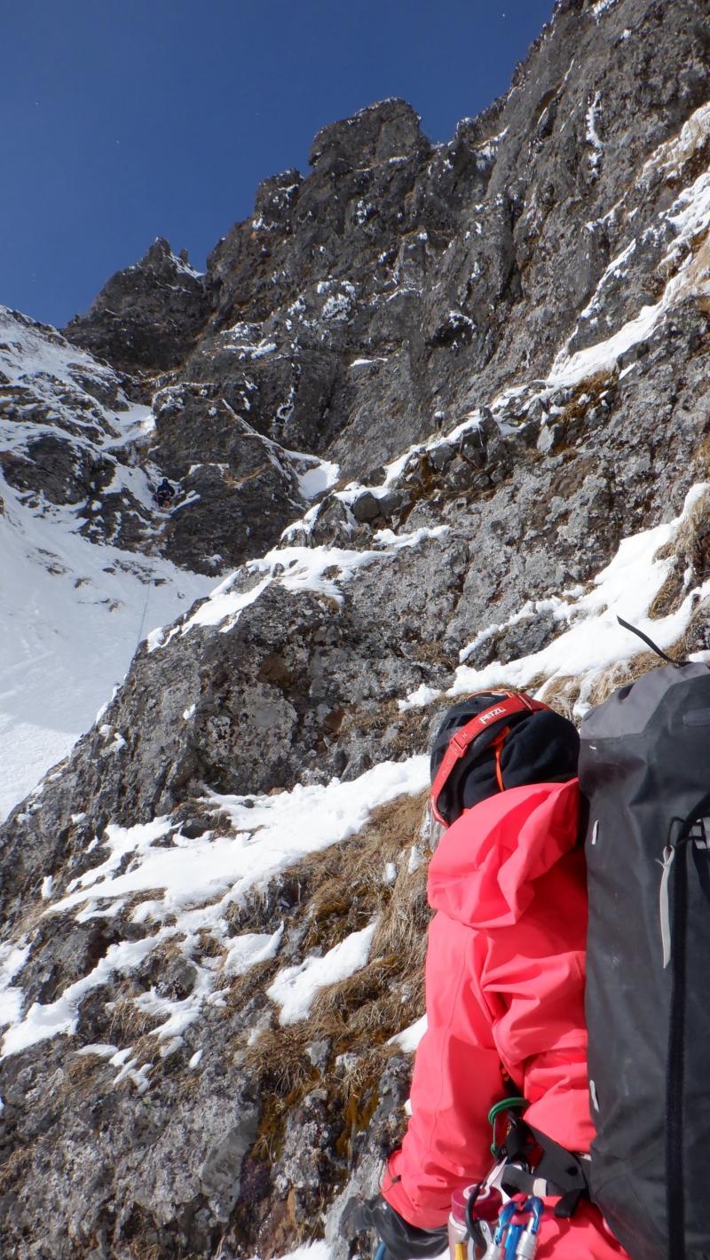 左上していくラインが、合っているのかどうなのか、稜線に出れるのだろうか、という不安でいっぱいでしたが、おそらく2パーティが私たちのあとを追って登ってきました。