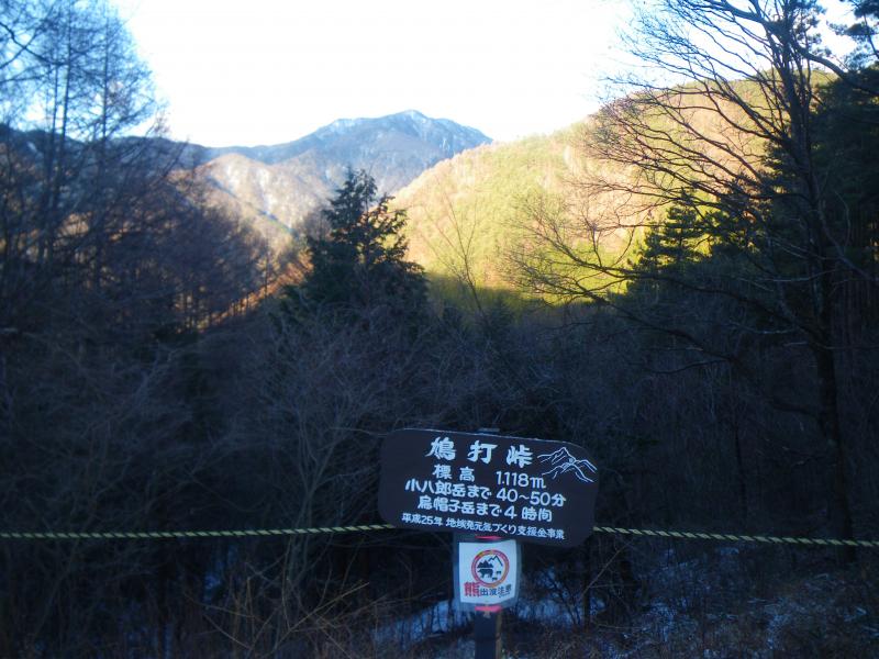 - 鳩打峠(47分)小八郎岳(69分)飯島分岐7合目(11分)セキナギ下部標識(15分)セキナギ上部標識(69分)烏帽子岩基部(30分)烏帽子岳(90分)飯島分岐7合目(90分)鳩打峠