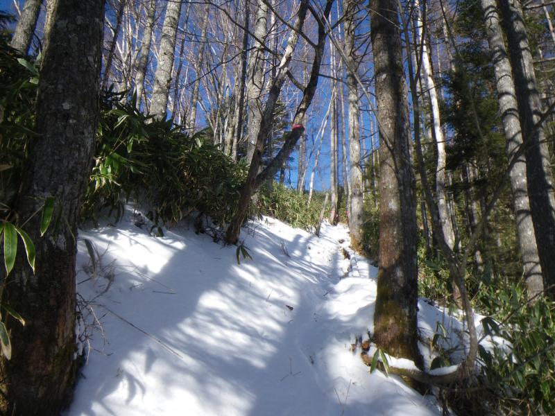 ➅小八郎岳の巻道との合流点で3/10になります。ここからセキナギまでは樹林帯の緩やかな道