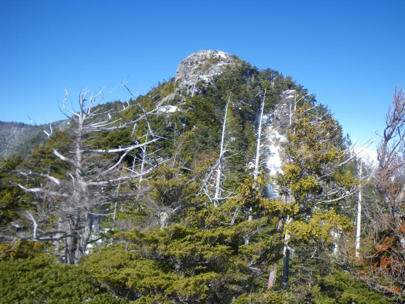 烏帽子岳(えぼしだけ・2195m)は中央アルプス南部の奥念丈岳から伊那側に派生する支尾根にあり、麓から見るときれいな烏帽子の形をしていて、山頂手前には烏帽子岩があります。