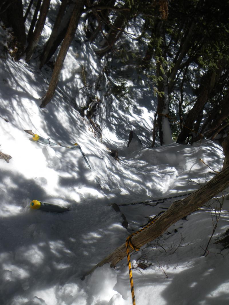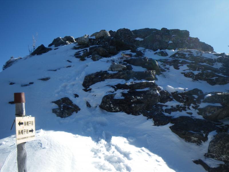 ➉烏帽子岩は梯子の初級、岩場の上級があり、上級の岩場は色々行けそうですが、ルートは鎖場があります。最後に初級・上級分岐へ下る際が最も危険な感じです。冬は雪や凍結がなければ全く問題がなさそうです。初級は烏帽子岩沿いに進みますが、ここの梯子は埋まり、急で、最後は烏帽子岩の際に鎖場があります