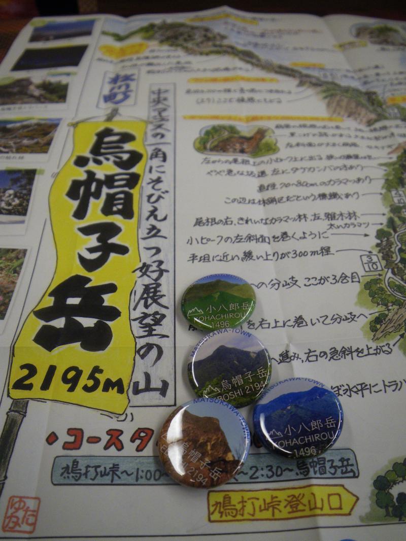 小八郎岳・烏帽子岳で本人の写真が映った写真を見せるとバッジがもらえます!