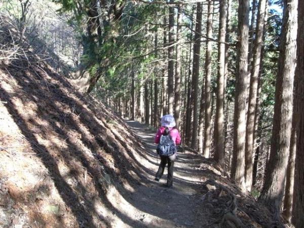 尾根の東側へと道は入って行くと日陰になり寒くて寒くて