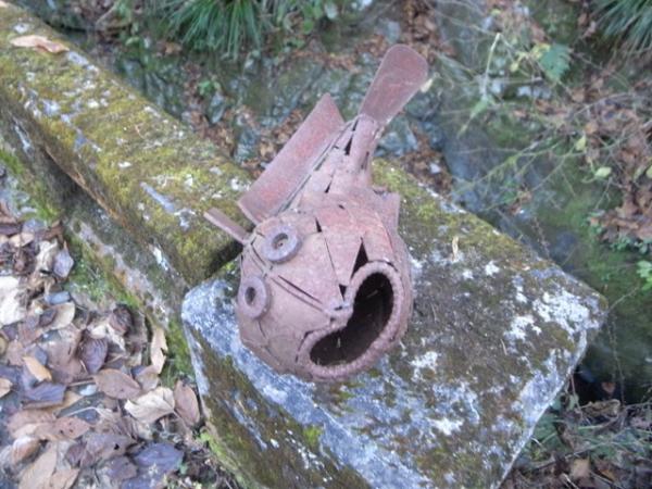 美術館前の日影岩が崩落の危険の為、近づかないようにとの張り紙あり。