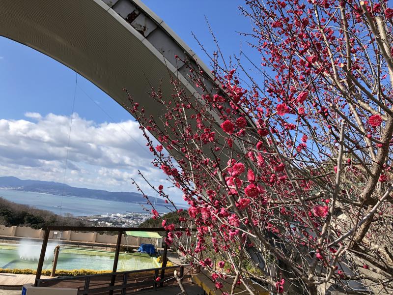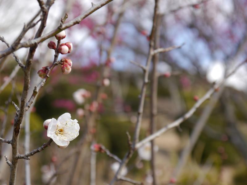 山上梅林の開花は、まだ1分~2分咲きといったところです。ここは2月中旬~下旬が見頃となるでしょう。