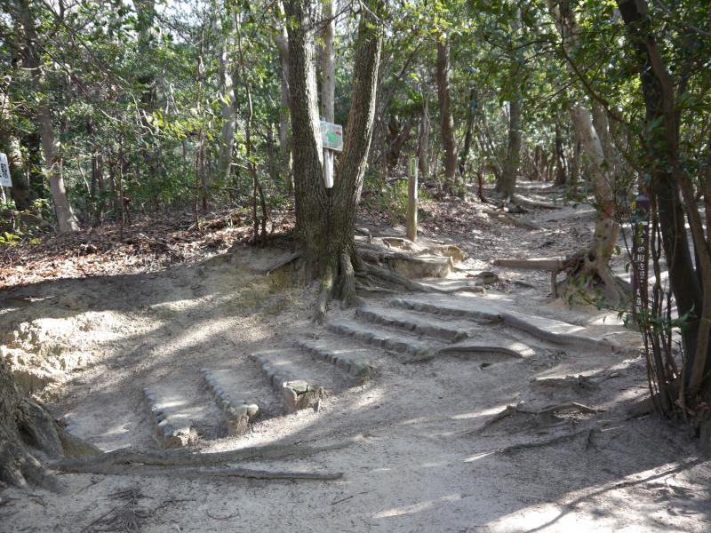 須磨浦山上まで登山道ははっきりと歩きやすく整備されています。旗振山から先は鉄拐山、高倉山とピークを越える六甲全山縦走路となっています。