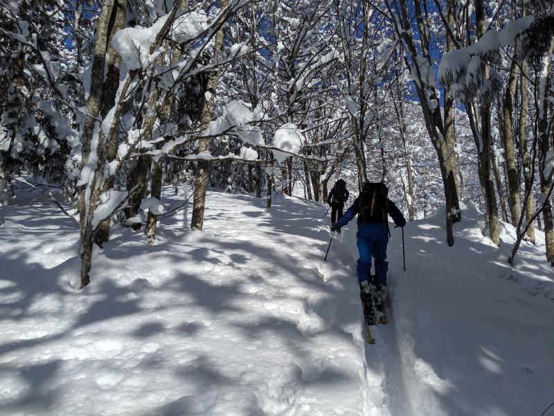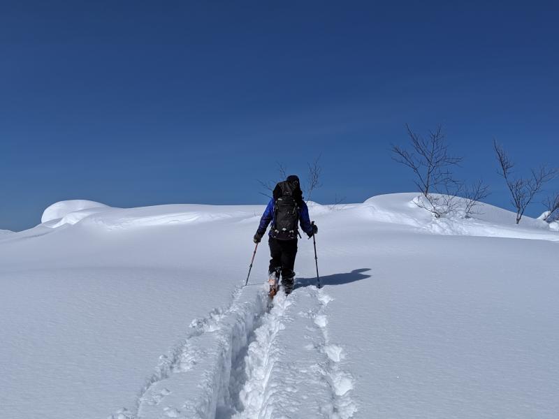 北面を滑って登り返して滑ってを繰り返し、最後は南面を来た道通りに落として終了。
