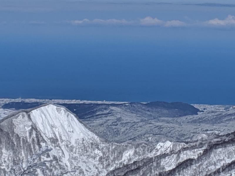 山頂は快晴無風。眺めも良く、寒さも全く感じません。少し休んでから、北面へ。