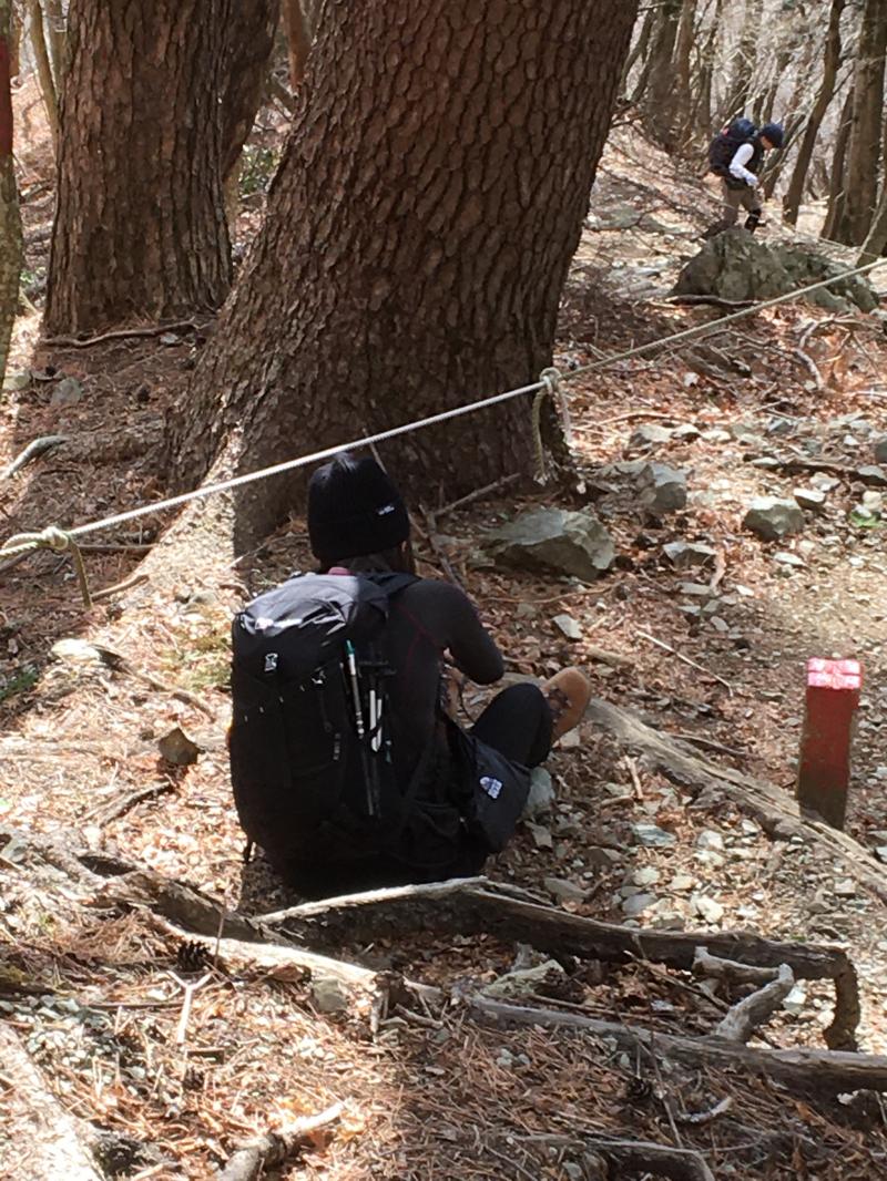 二俣までの林道が長く歩きにくかったため疲れたのか、登山道に入ってしばらくすると急登にげんなりしはじめ、鍋割山が標高のわりにきついことにようやく気がついたようでした。