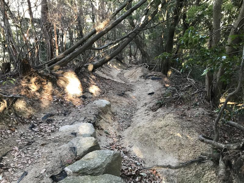 この時期はコースわきの木々も葉を落としているので登山道も明るく、尾根筋の樹間からは西宮や宝塚の市街や遠く大阪の町も望め、気持ちのいいハイク&ランが楽しめます。