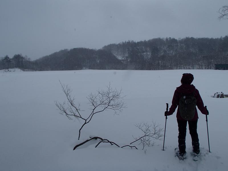・あまりの雪の少なさに、当初の予定していたコースを断念。次の候補は道路の状況が悪くここも断念。最終的に時間もロスしてしまったため、沼ノ原湿原周辺の散策に落ち着き、斑尾スキー場へやって来ました。