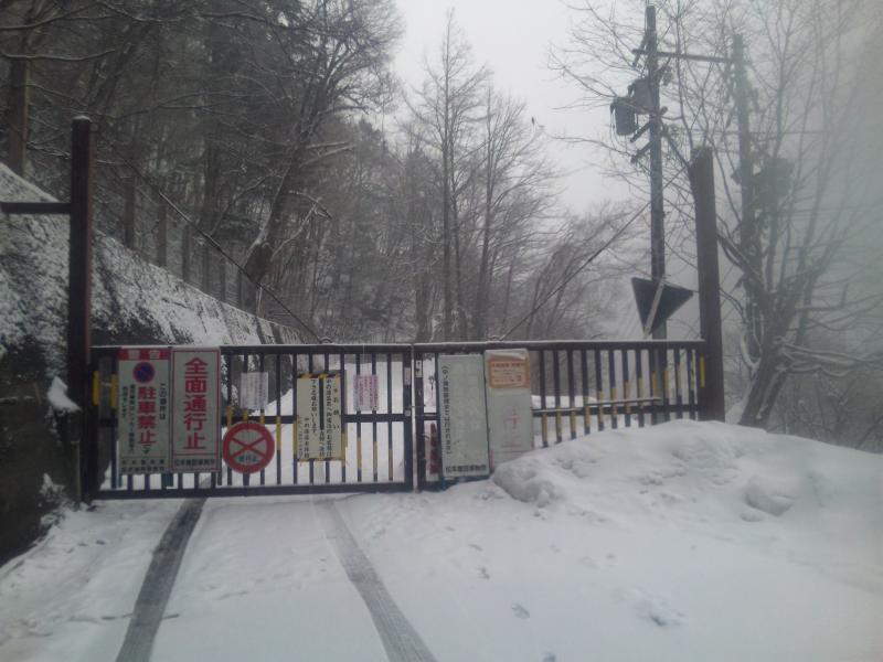➀旧158号は冬季通行止だが、除雪は定期的にしている。入口ゲートは手で開ける(予約者のみ)