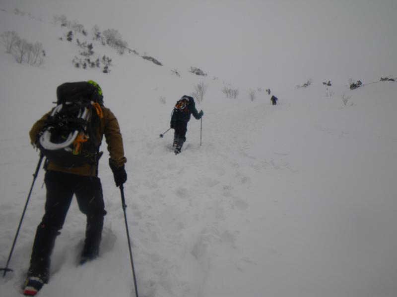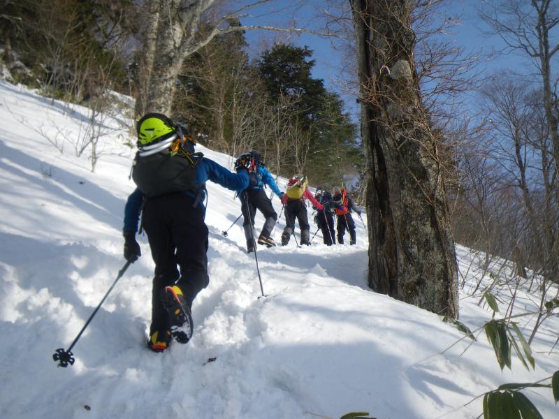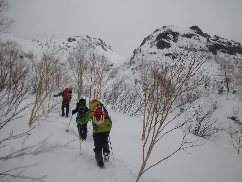 ➄北峰へ行く場合は展望広場上から下堀沢を上がってをどんどん詰めていきますが雪崩注意