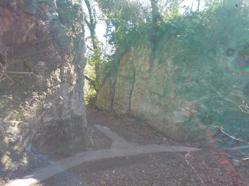 少し開けた岩のT字路で右から神武寺コースと合流。