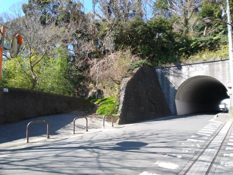 切通で右に行くと京急田浦駅。真っ直ぐで浜見台経由京急追浜駅・田浦駅。