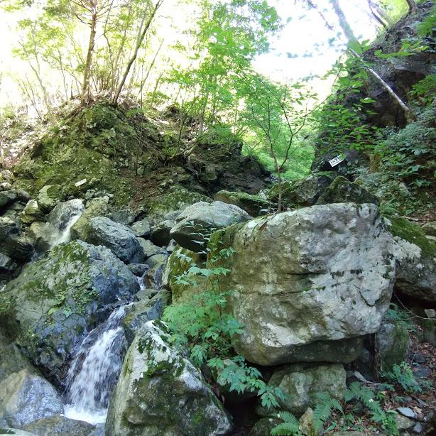 登ると出合、右に行きます。セドノ沢2つの滝を越えると右俣、左俣の出合。