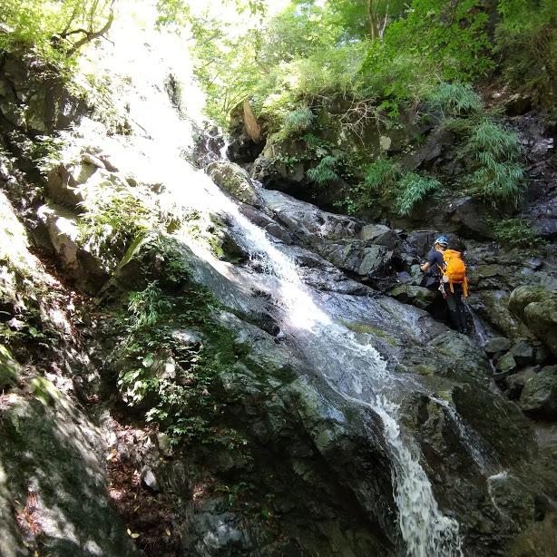 セドノ沢右俣 ルート自体は短いですが大滝があり、基本的なロープワークが必要です。