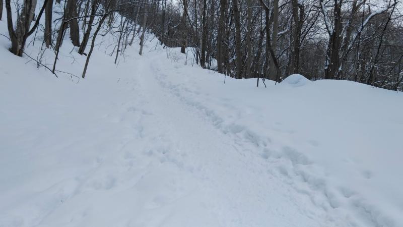 いつもの藻岩山トレランも少し飽きてきたので同じく札幌市内で気軽に走りやすい三角山へ行ってきました。こちらも札幌市民が気軽に登る山として親しまれている山だけあって、冬でもしっかりとレースが付いています。奥三角山までもトレースがあり走りやすかったです。アップダウン少なめ、やや藻岩山より楽な感じがありますが、たまには違うコースも気分転換にはいいと思いました。
