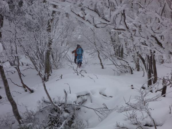 - 先週の寒波の影響と19・20日共に小雪が舞ており山頂直下では40~50cmの積雪状況となっております。スキー場跡も積雪は十分でスノーシューやワカンでの雪遊びが楽しめます。