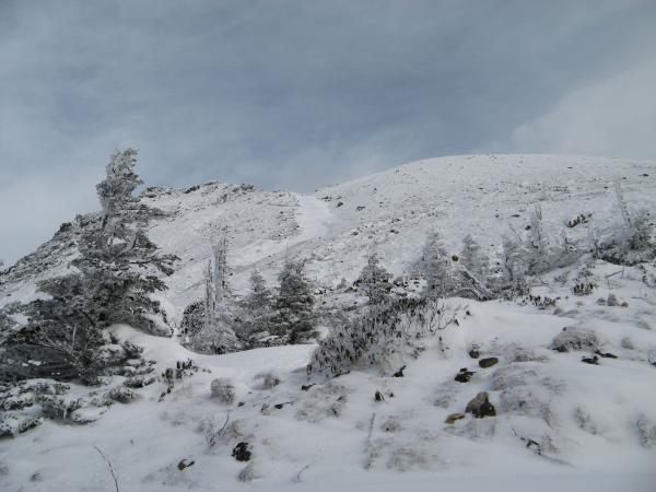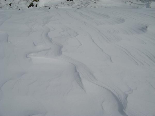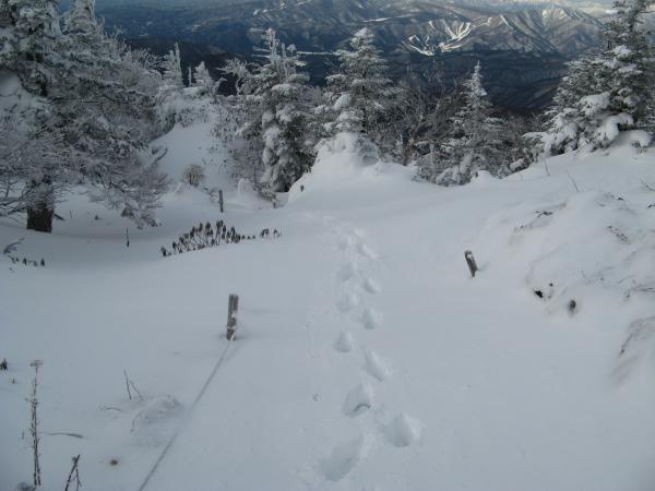 頂上付近は夏道が埋まっていてわからなかったので、安全で歩きやすそうな場所を選んで登りました。