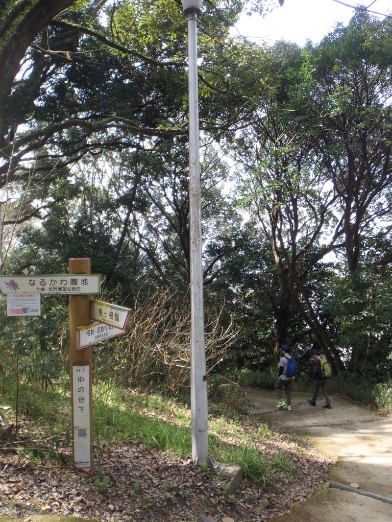 - 芝生の駐車場(20分)枚岡梅林(5分)中の谷下(25分)枚岡山展望台(20分)額田山展望台(10分)中展望(10分)芝生の駐車場 【 コース合計 1時間30分 】