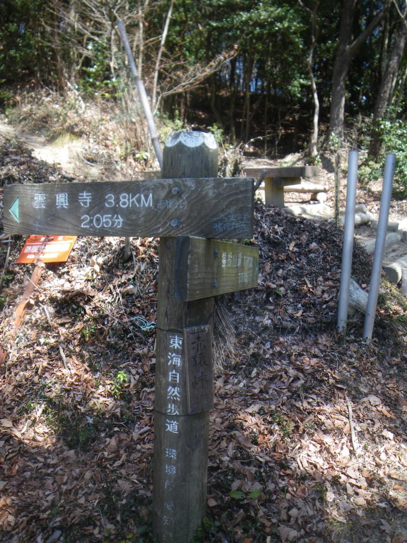 - 雲興寺駐車場(23分)白山展望地(2分)送電線交差休憩所(12分)三又(15分)赤猿分岐(10分)猿投山(8分)赤猿分岐(12分)赤猿峠(7分)林道(10分)三又(11分)送電線交差休憩所(22分)雲興寺駐車場