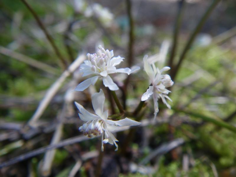 今日はカタクリを見るのが目的なのでやや遅めに出発して、北の瀬戸側から主に東海自然歩道を辿りました。昨日と同じく、登山口からすぐにショウジョウバカマが見られ、下部の沢沿いは右・左に花を見ながら歩きます。
