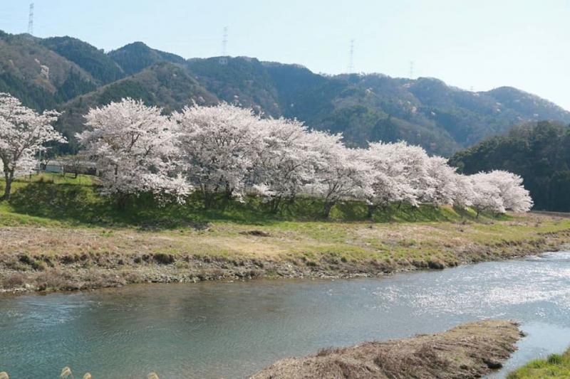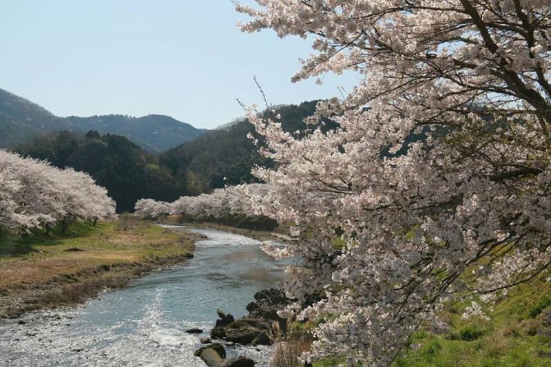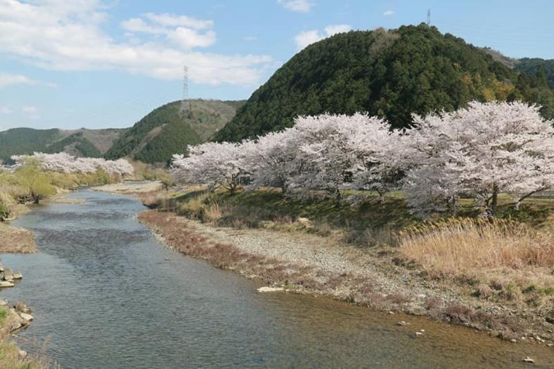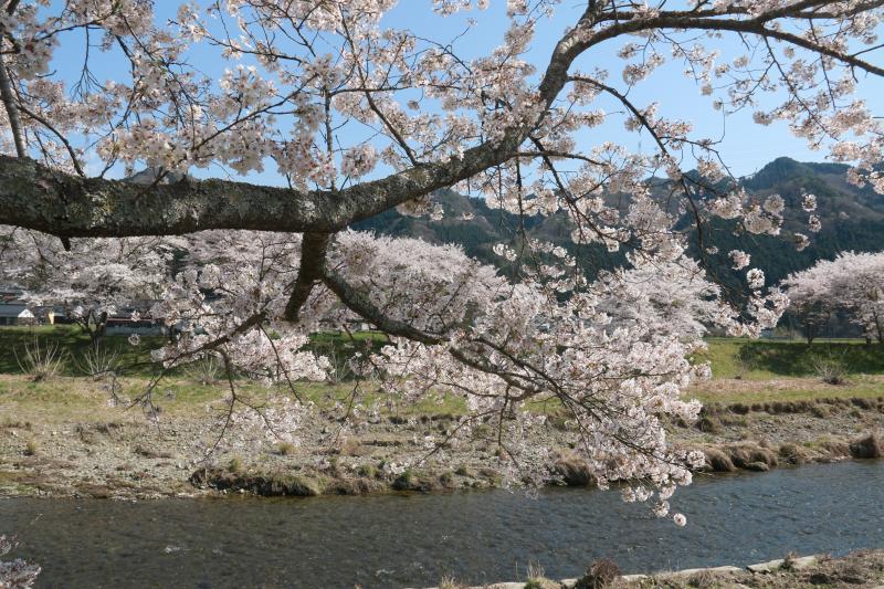 下道の姫路から桜は満開です。川沿いの桜がとても綺麗でどんどん北上します。