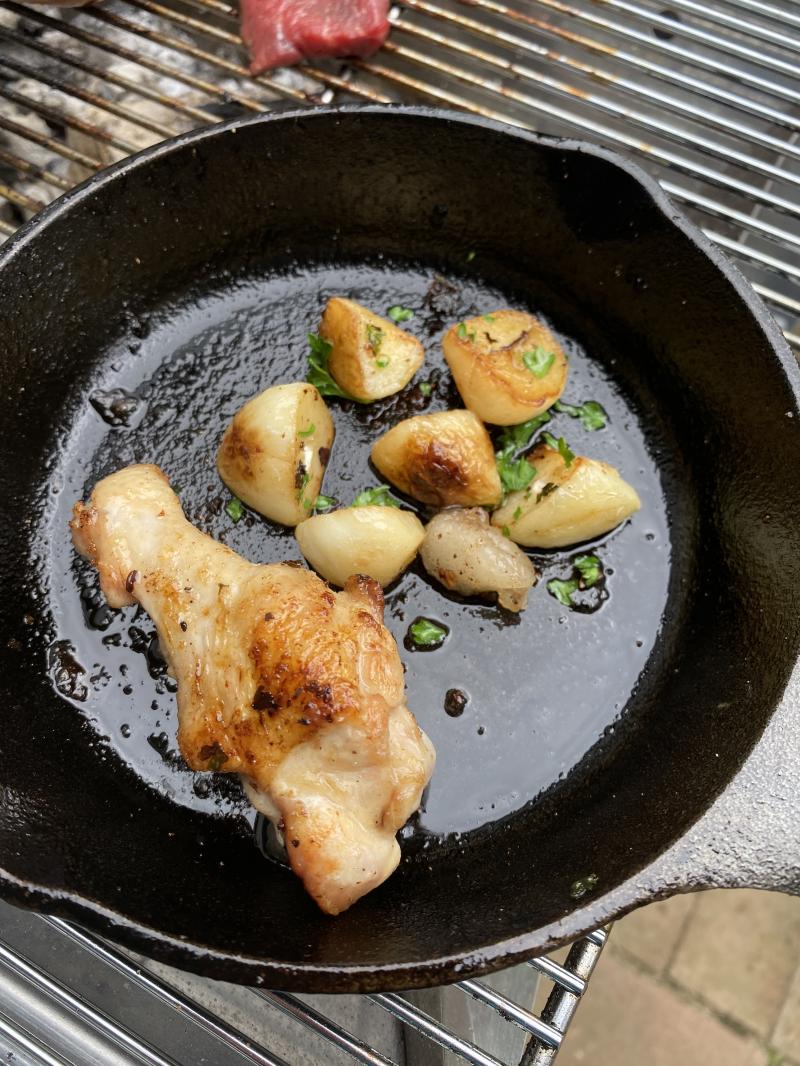 スキレットでチキンを焼く時に、ニンニクも焼いたのですが、