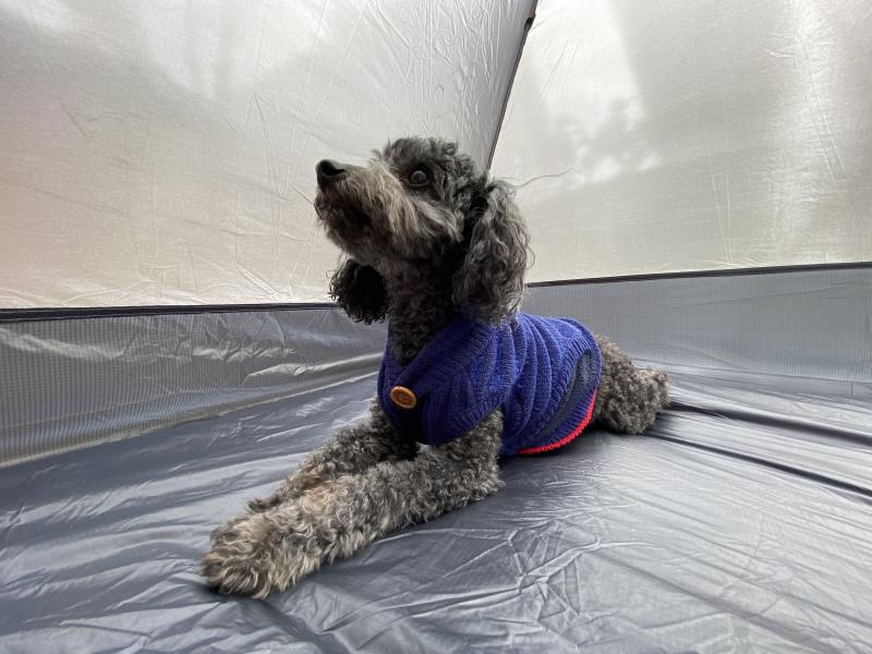 父がテントに入ったことがなく、「入ってみたい♫」と寝転んでみて楽しそうでした。