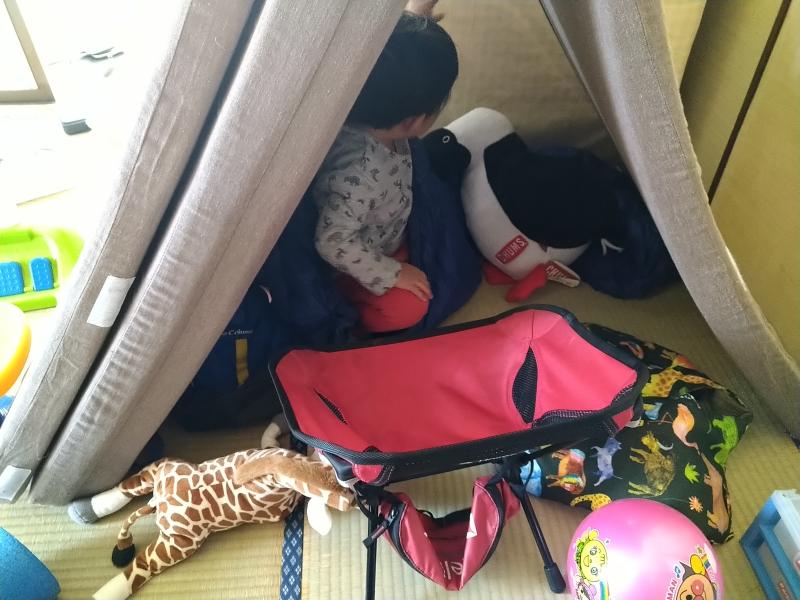 朝から元気いっぱいで遊んでいる息子が布団でテントー!と遊んでいたので