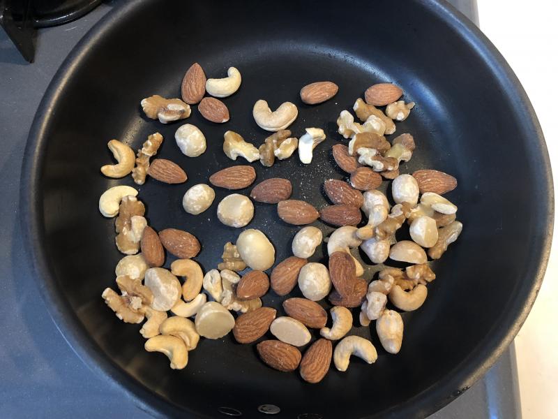 ・ナッツを軽く炒って、大き目に刻みます。※時間があればオーブンで焼くと香ばし感アップ☆