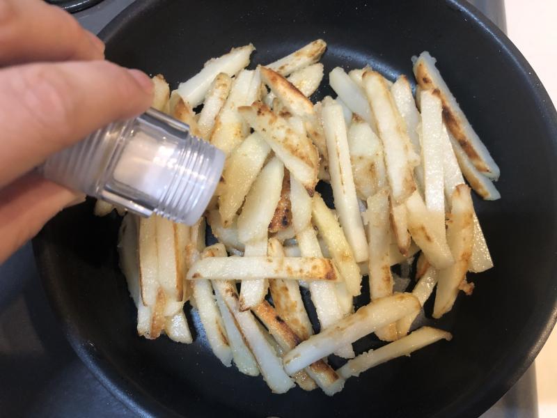 ④軽く焦げ目が付いて火が通ったら塩をかけて完成。