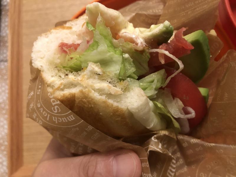 サンドイッチは野菜がたくさん入っていて毎回注文するえびアボガドサンドに決定。