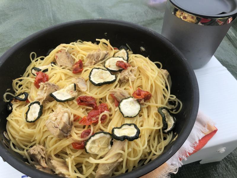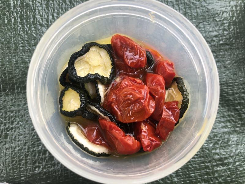先日作った干し野菜と缶詰を使い携行性は完ぺきです。