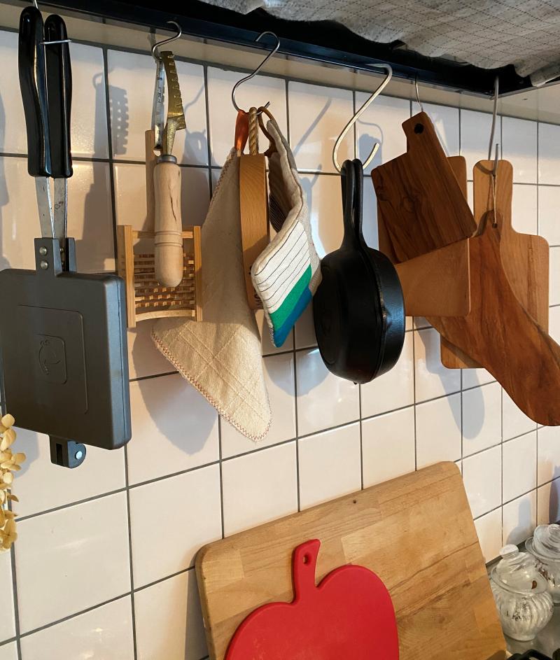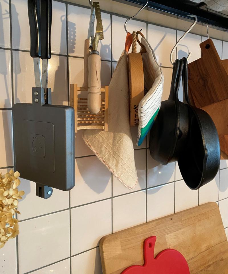 スキレット6.1/2インチのを2つ掛けて保管しているところへ、