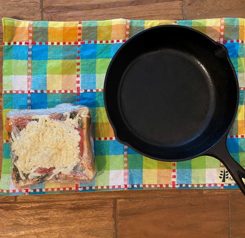 私の家の魚焼くグリルのところに、スキレット8インチがギリギリ入りました♪