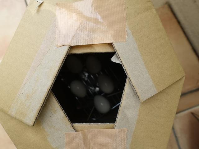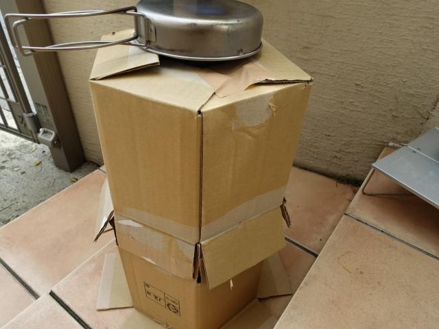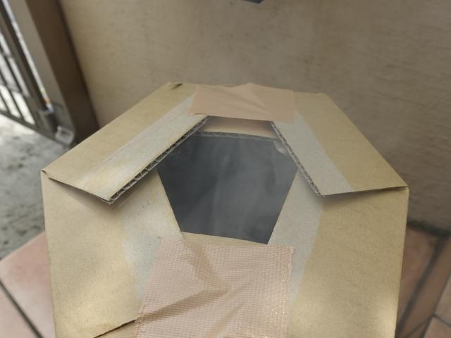 2)店にあった小さな段ボール2つ縦に使って燻製器を作成