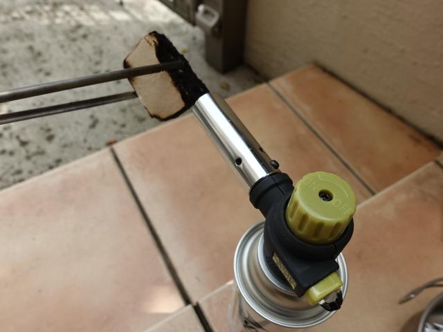 事前の調べでスモークウッドが立ち消えする症例が多かったのでライターで無く炎の温度が高いSOTOマイクロバーナーアクティブでつけましたが 見事に!?開始5分程で鎮火 煙が出なくなったので慌ててSOTOフィールドチャッカーで再度点火!!かなりしつこく炙ってモクモク煙が立ってる位でセットするのがいいみたいです
