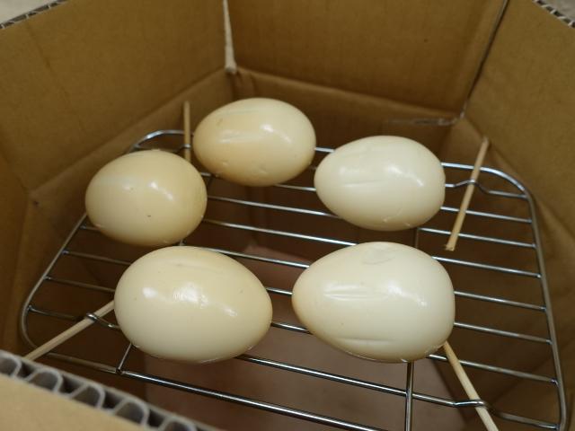 7)たまにタマゴの向きを変え万遍なく色づくよう調整