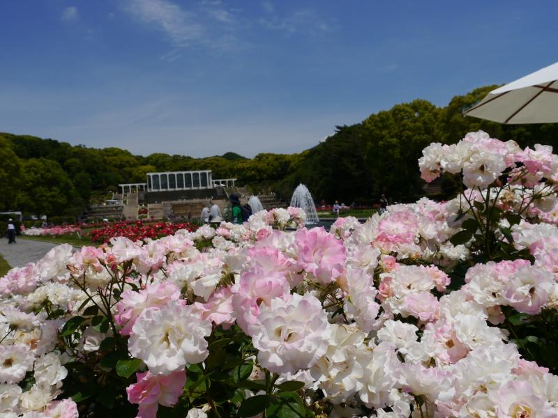 ・須磨離宮公園も5月20日から営業再開しています。入園してまずこの時期はバラの花ざかりです。しばし観光気分でゆっくり周遊して、いざお山へ。