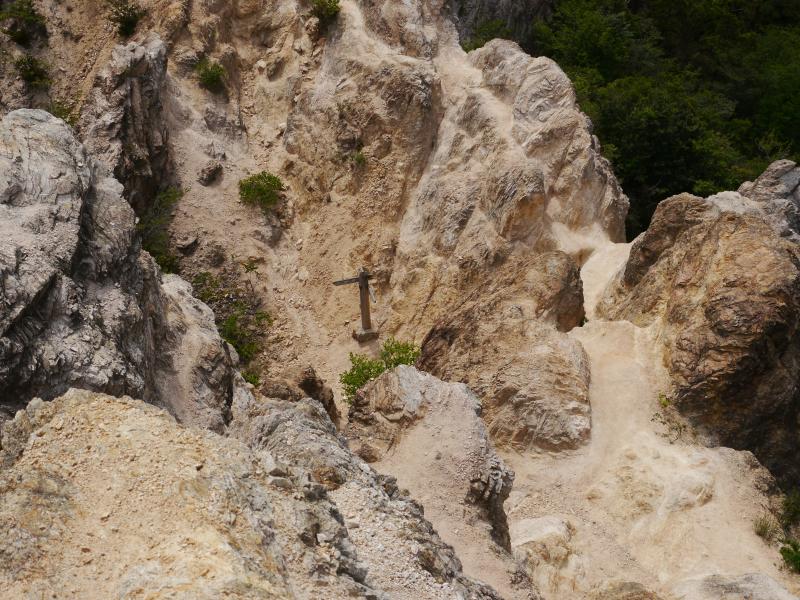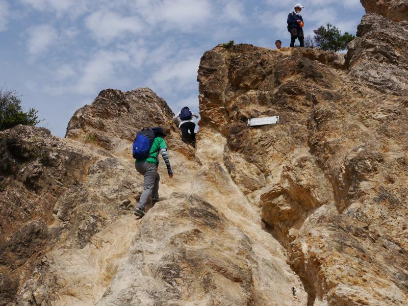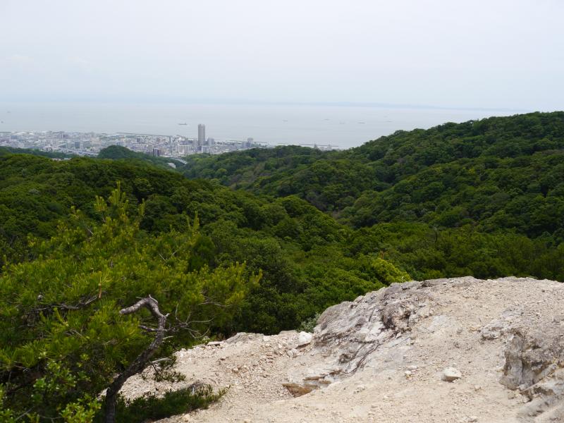 栂尾山から先は六甲全山縦走路でもあります。10分ほどで横尾山を過ぎると関西では有名な須磨アルプス「馬の背」の荒涼とした岩場が出現。それまでの濃かったり薄かったりした緑の景色とは打って変わった様子に