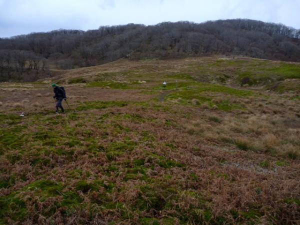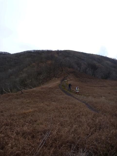 稜線に出ると一気に視界が開け、雄大な笹原台地が楽しめます。