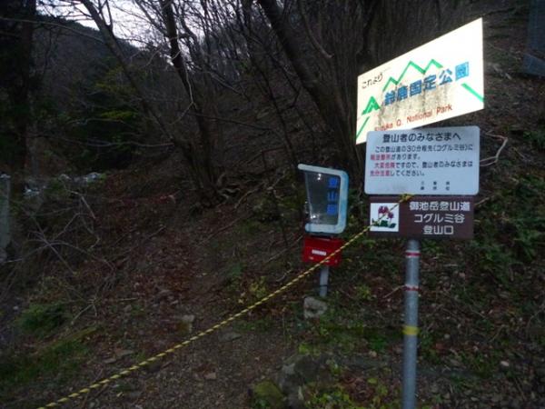 - まず注意が必要なのは、コグルミ谷登山口で左岸に登山届けBOXがあり、ここのルートが正しいように見えますがロープが張ってあり入れないようになっています。ここはルートではなく右岸が正解なので間違わないようにしてください。