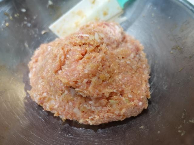 3)玉ねぎをみじん切りにしてひき肉と合わせる