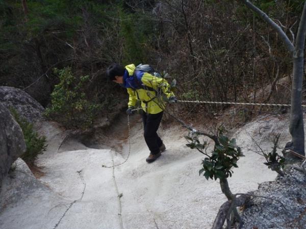 - 花崗岩がおりなす山で、鎖のついた岩登りもありますが、注意して通過すれば問題ないと思います。コースや標識がしっかりとしていますので迷うこともないかと思います。